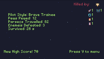 The ‘pew’ and ‘zap’ are a little to distracting/annoying when trying to dodge projectiles. Overall, I didn’t hate playing it, so that’s always a good sign. Will definitely be keeping an eye on the project you you continue to work on it.